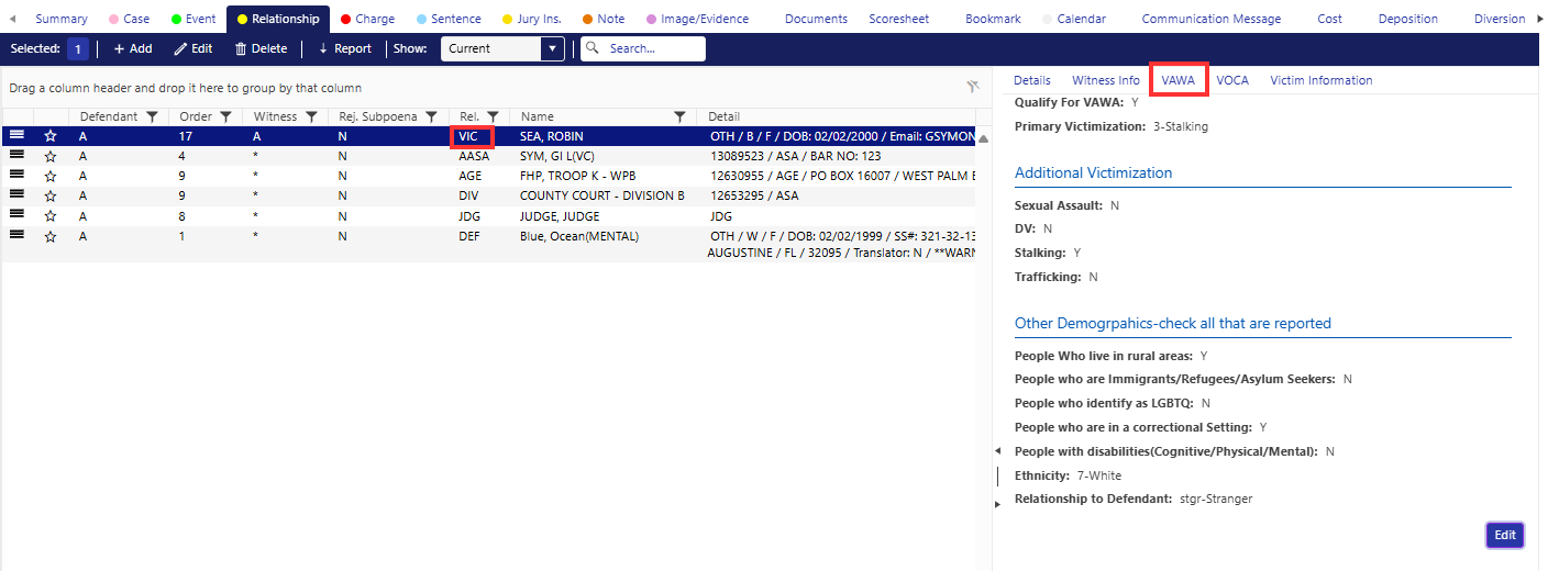 What is the Relationship Tab? The relationship tab is where all parties related to a case are listed. This includes defendants, attorneys, judges, witnesses, officers, agencies, victims, secretaries, investigators, etc. By default, the Relationship ...