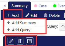 The Add button allows users create a new summary page or Add a query to the current summary page.