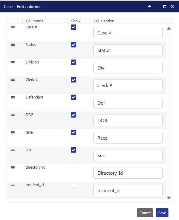 to decide the order of the fields, whether or not the field is shown on the screen and the caption for the field.