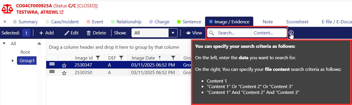 What is the Image Search? The image search is a tool used to easily search for images in any case. This is useful when users are searching for an image but are not sure what case the image was related to. Users can use one or many filters to find the ...
