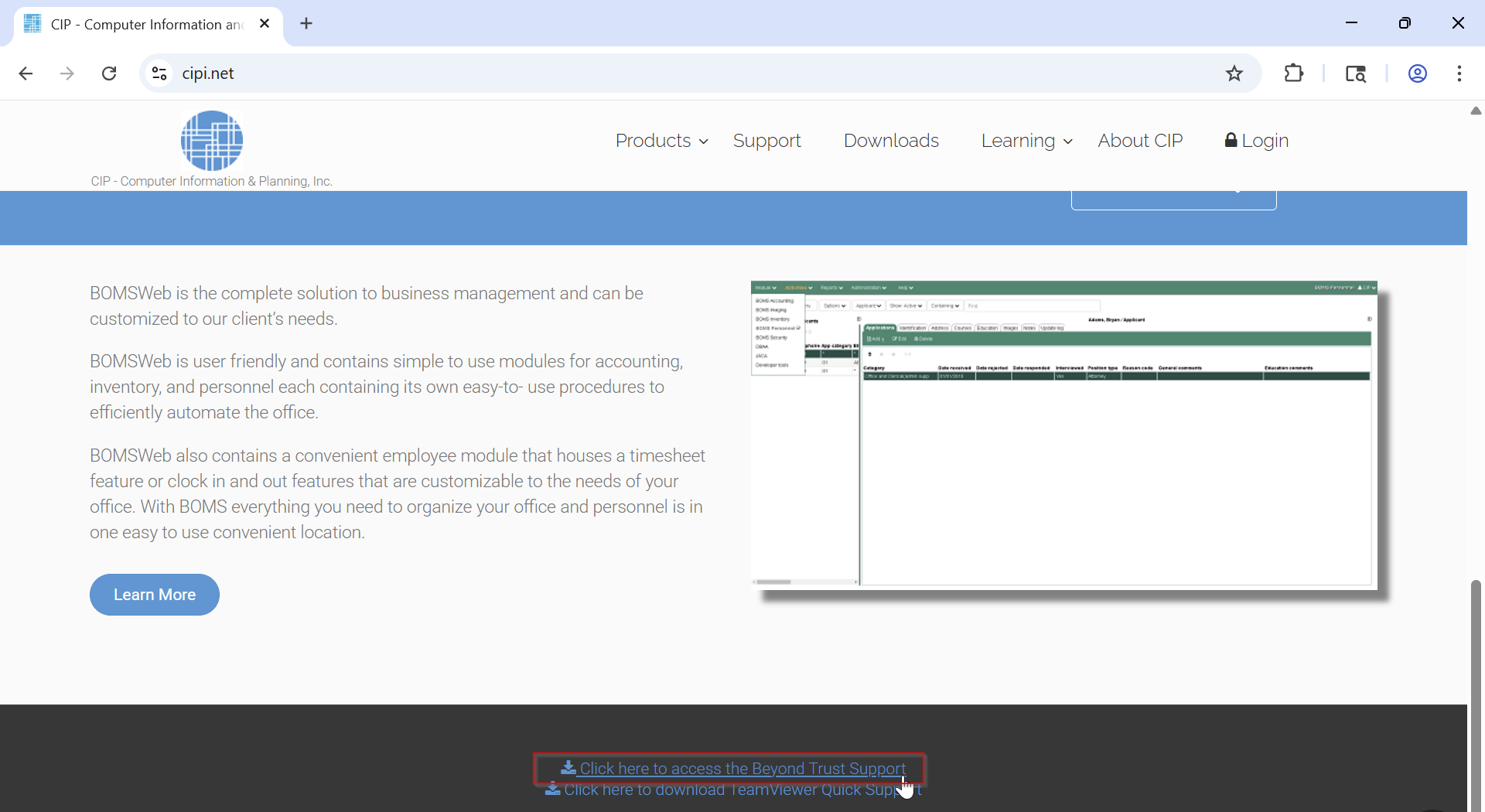 1. Browse to CIP website (www.cipi.net) and click on "Click here to access the Beyond Trust Support" link located at the footer of the website.