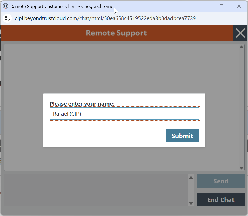 8. Now the CIP Support representative can view and control your workstation. They will be able to work with you to troubleshoot the issue reported.