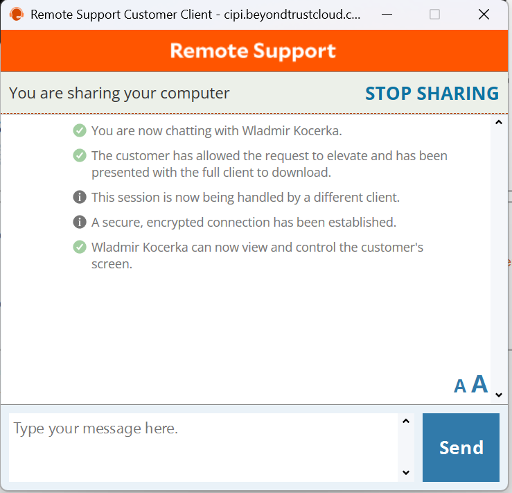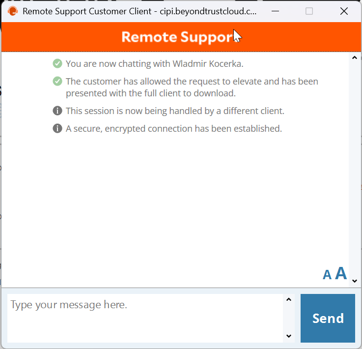 6. A client will be downloaded automatically. Once completed, double-click on the client to run it. The Remote Support Customer Client will start loading.